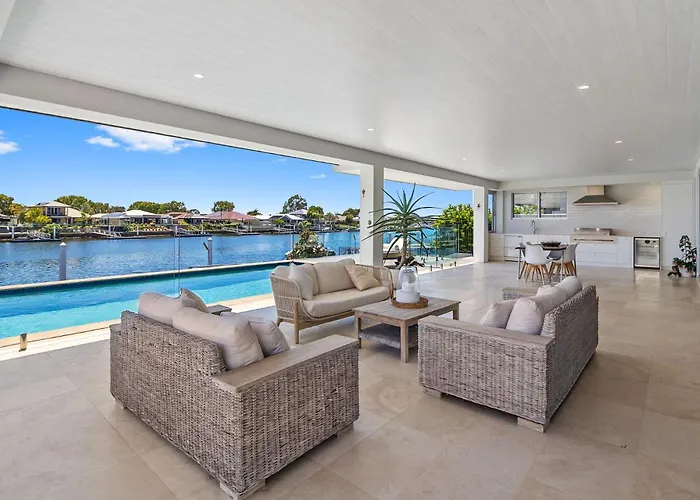 Dotée d'un accès à une terrasse, la villa Waterfront Showpiece Pelican Waters est située à 25 minutes de marche de Woorim Park.